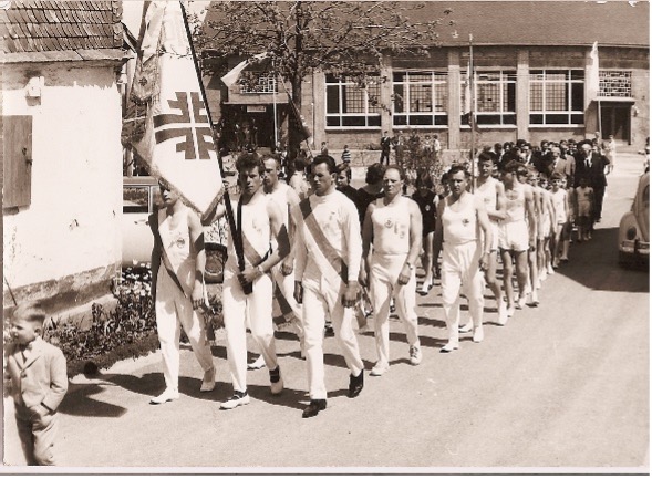 Nach dem Krieg wurde der Verein 1952 wiederbelebt. Ein Meilenstein war das 30-jährige Jubiläum am 8. und 9. Mai, bei dem zehn Mitglieder für ihre 30-jährige Mitgliedschaft geehrt wurden. 1959 erfolgte die Fahnenweihe, und 1967 wurde die Turnhalle nach 8000 Arbeitsstunden der Mitglieder eingeweiht, mit nur 50% Verbrauch des veranschlagten Budgets